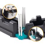 Nav nepieciešama kalibrēšana, uzstādīšana vai testa grieziens. Atveriet rokas, lai tās atbilstu leņķim, aizslēdziet leņķi, novietojiet vadotni pret materiālu un grieziet – gatavs mazāk nekā 30 sekundēs uz katru griezienu. Nerūsējošā tērauda rokas notur pozīciju, tādēļ leņķis griešanas laikā nemainās.
