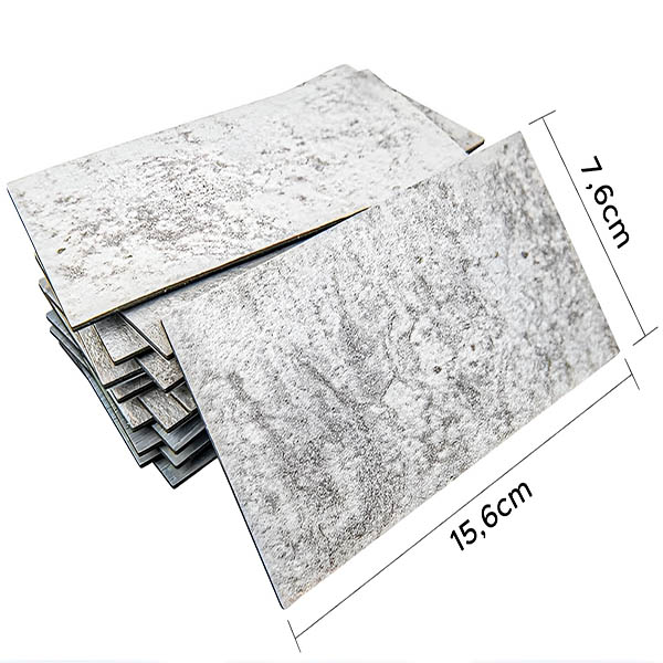 Taisnstūra forma (15,6 x 7,6 cm) ļauj veidot dažādus pievilcīgus rakstus. Katrā 10 flīžu iepakojumā ir aptuveni 0,12 kvadrātmetri, kas ir lieliski piemērots radošiem dizainiem.