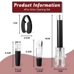 Šis 4 vienā komplekts ietver gaisa sūkņa attaisāmo, folijas griezēju, aeratora uzgali un vakuuma aizbāzni nevainojamai vīna baudīšanai.