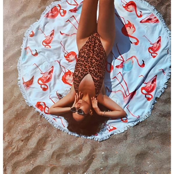 Apļveida dvielis ir paredzēts atpūtai pludmalē vai pie baseina, taču to var valkāt arī sasietu ap ķermeni kā apģērbu.
