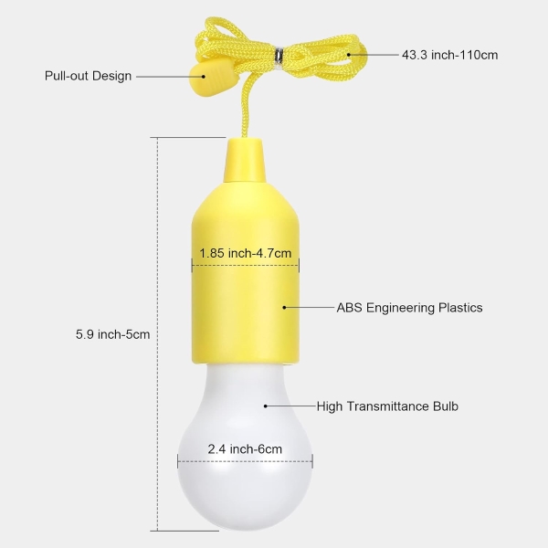 Izbaudiet HALOGLO ērtības telpās bez elektrības rozetēm. Šīs spuldzes bez elektrības vadiem un bez maksas ir lieliski piemērotas vietām, kur piekļuve elektrībai ir ierobežota vai tās nav, piemēram, veikalos, šķūņos, bēniņos vai āra terasēs. Vienkārši pakariniet tās, izmantojot komplektā iekļauto virvi, pavelciet auklu, lai tās ieslēgtu, un izbaudiet mirdzumu.