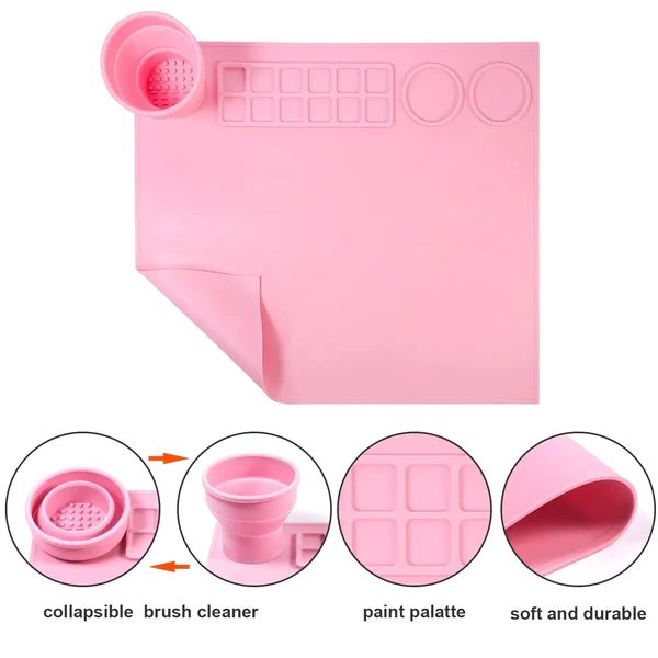 Mūsu pirmais paklājs ar iebūvētu saliekamu birstes tīrīšanas trauku. Otu tīrīšanas kausiņs ir paredzēts ūdens uzglabāšanai un krāsu otu tīrīšanai.