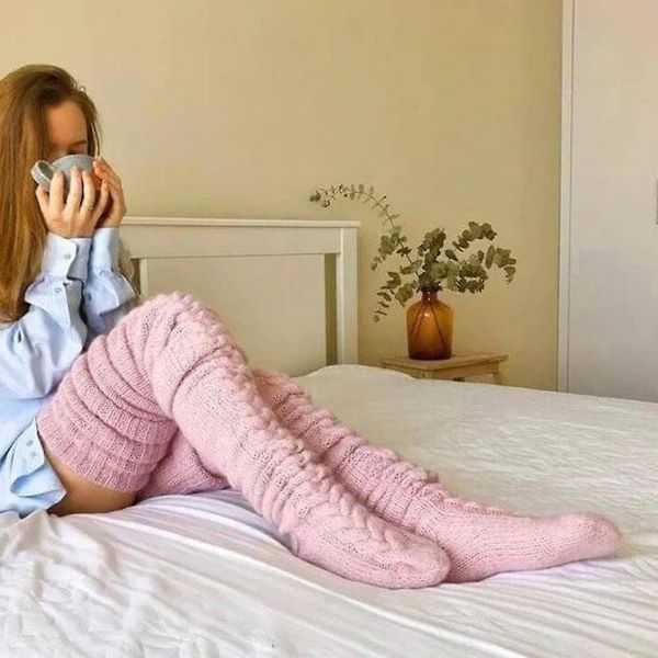 Cīnieties ar aukstumu ar šīm adītajām zeķēm līdz augšstilbam, kas ir ne tikai biezas, bet arī neticami mīkstas.