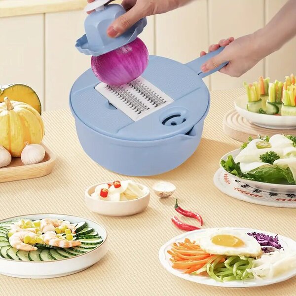 No olu atdalīšanas līdz dārzeņu griešanai, 12-vienā dizains tiek galā ar gandrīz jebkuru ēdiena gatavošanas izaicinājumu. Pieejams stilīgās zilās un rozā krāsās, lai atbilstu jūsu virtuves dekoram.
