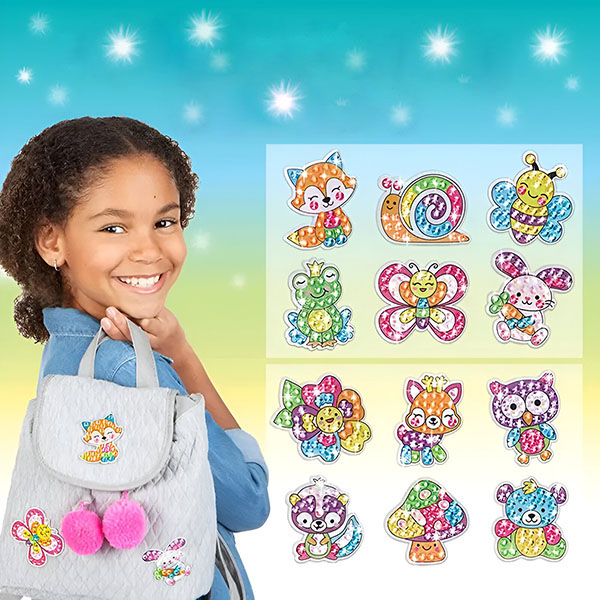 Dekorējiet, personalizējiet un viegli piešķiriet mirdzumu ikdienas priekšmetiem. Šis daudzpusīgais komplekts ļauj bērniem un pieaugušajiem dekorēt ūdens pudeles, piezīmju grāmatiņas, tālruņu vāciņus un daudz ko citu. Tas pārvērš vienkāršus priekšmetus žilbinošos šedevros. Tas ir jautrs, izglītojošs un lieliski piemērots visu vecumu cilvēkiem!