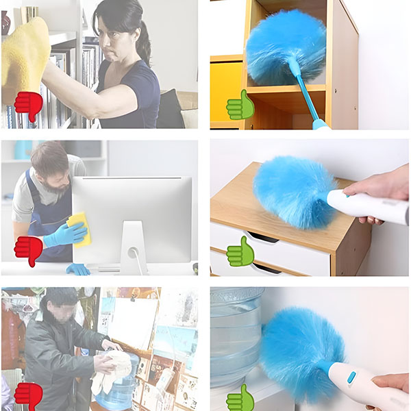 Īpaši smalkā mikrošķiedras galva uzreiz satver un notver putekļus, netīrumus un alergēnus, padarot tīrīšanu 5× efektīvāku nekā tradicionālie putekļu slotiņas. Vairs nekādu putekļu lidošanas apkārt—tikai tīras virsmas sekundēs!