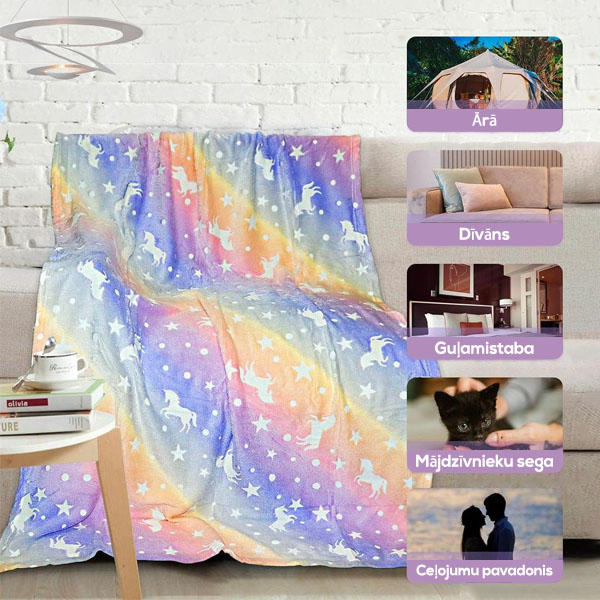 Mājīga un silta sega nakts laikā izstaro gaismu! Tu vari izvēlēties vienradža vai dinozaura rakstu!