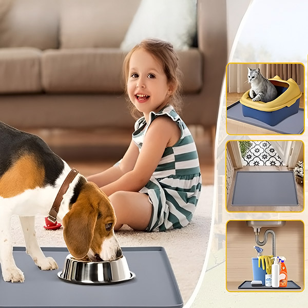 Izgatavots no izturīga, netoksiska silikona, šis paklājiņš ir 100% drošs jūsu mājdzīvniekiem. Tā ūdensnecaurlaidīgais dizains pasargā jūsu grīdas no noplūdēm, skrāpējumiem un traipiem, sniedzot sirdsmieru katrā ēdienreizē.