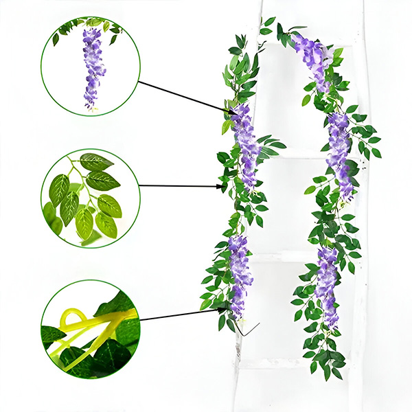 Vai esat noguris no īsto ziedu kopšanas, kas vīst un izbalē? WISBLOOM ir vistērijas ziedu imitācija ar efejas lapām, kas jūsu telpai piešķirs dabisku skaistumu bez rūpēm. Šie dinamiskie, reālistiskie karājas ziedi gadu no gada saglabāsies svaigi un krāsaini, nodrošinot, ka jūsu dārzs vai māja vienmēr izskatās satriecoši.