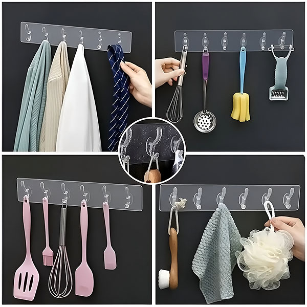 Pārveidojiet savu mājas organizāciju ar šo elastīgo pašlīmējošo pakaramo. Ar sešiem izturīgiem āķiem tas ir ideāli piemērots virtuves rīku, vannas istabas piederumu, apģērbu un citu lietu glabāšanai.