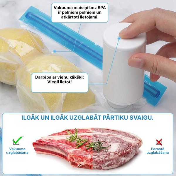 QUICKSEAL saglabā gaļu, dārzeņus, augļus un pārpalikumus svaigus—ideāli piemērots maltīšu sagatavotājiem un aizņemtām ģimenēm!