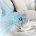 Šis uzlādējamais ventilators ir aprīkots ar lielas ietilpības 5 V/2 A akumulatoru, kuram pilnīgai uzlādei nepieciešamas tikai 3-4 stundas, un atkarībā no vēja ātruma iestatījuma tas var darboties 4-12 stundas.