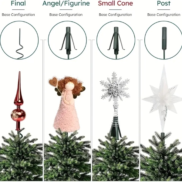 Paredzēts universālai saderībai, lai droši noturētu visu formu un izmēru svētku galotnes.