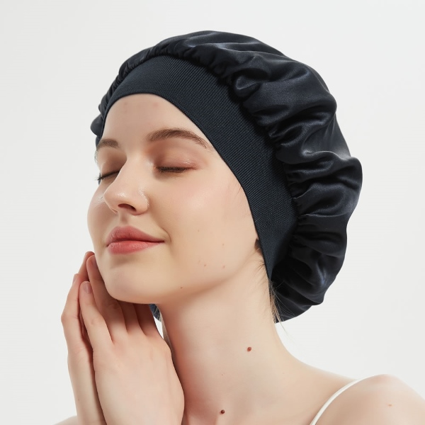 Mūsu cepurītei ir plats malu dizains, kas izgatavots no augstākās kvalitātes zīdaina satīna auduma, nodrošinot maksimālu komfortu, nezaudējot stilu. Plašā josla ir veidota tā, lai tā izstiepjas un individuāli pieguļ, nodrošinot greznu un drošu matu aizsardzību.