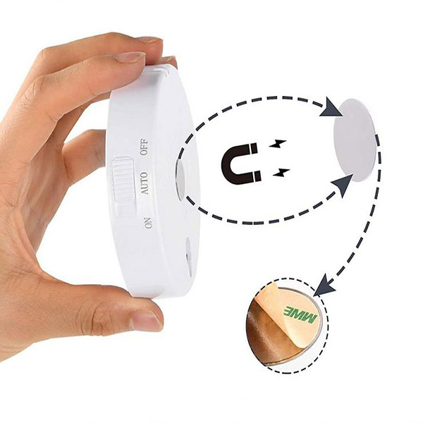 Uzstādiet to jebkurā vietā! Iebūvētais magnēts ļauj to novietot uz jebkuras dzelzs virsmas vai izmantot abpusēji līmējošo lenti, lai piestiprinātu to pie jebkuras līdzenas virsmas.