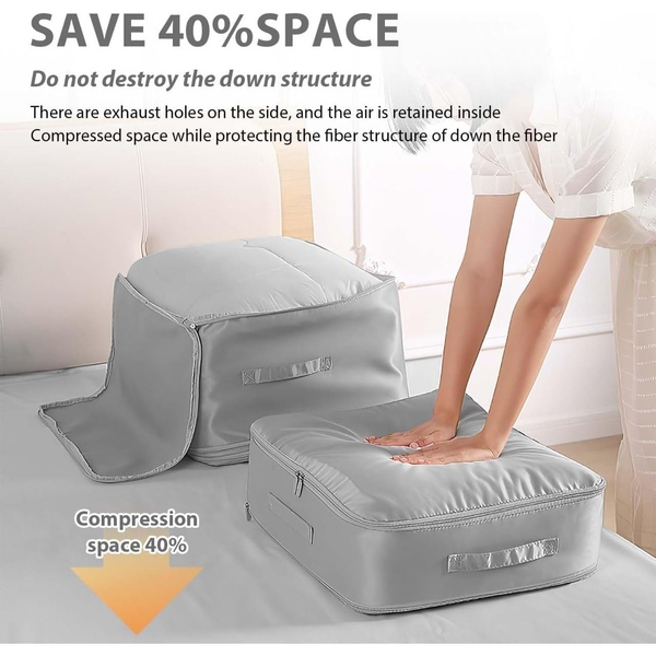 Viegli saspiediet drēbes, segas un citus priekšmetus bez vakuuma, atbrīvojot daudz papildu vietas jūsu koferī vai skapī.