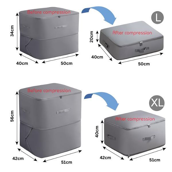 🧳 Viegli saspiež drēbes, segas un citus priekšmetus – nav nepieciešams vakuums.